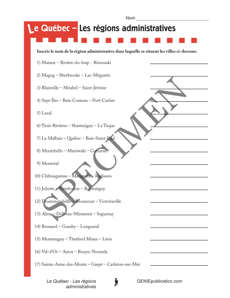 L'élève doit inscrire le nom de la région administrative dans laquelle se situent les villes du Québec.