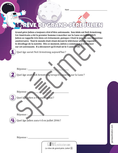 L'élève doit déterminer l'âge de Neil Armstrong et de grand-père Julien.