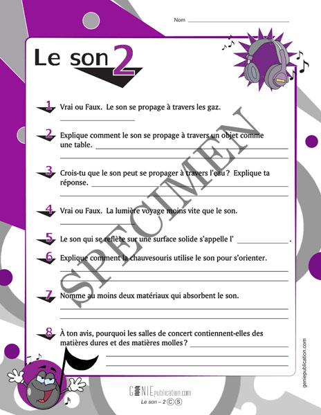 Dans cette activité d'enrichissement, l'élève doit répondre à des questions au sujet du son et des ondes sonores.