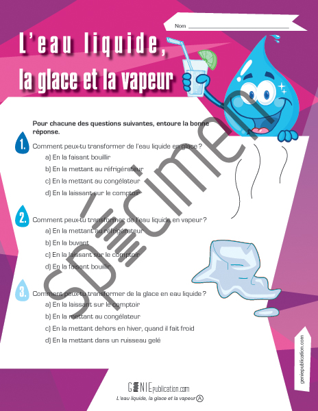 L'élève doit indiquer de quelle façon il est possible de faire passer de l'eau d'une phase à une autre et le démontrer en entourant la bonne réponse pour chacune des questions.