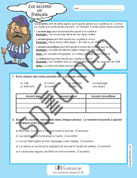 L'élève doit classer des mots en fonction de leurs accents et accentuer correctement des mots à l'intérieur de différentes phrases.