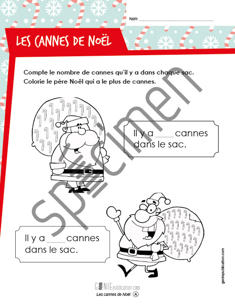 L'élève doit compter le nombre de cannes de Noël dans chacun des sacs et déterminer celui qui contient le plus grand nombre d'éléments.