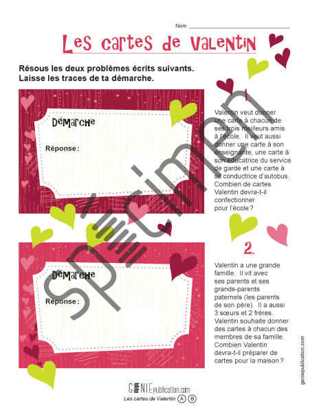 L'élève doit résoudre deux courts problèmes écrits sur le thème de la Saint-Valentin.