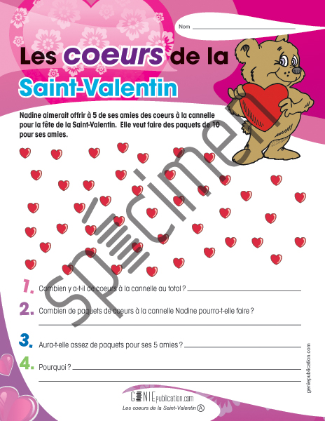 L'élève doit dénombrer la collection de coeurs à la cannelle. Il doit ensuite répondre aux questions.