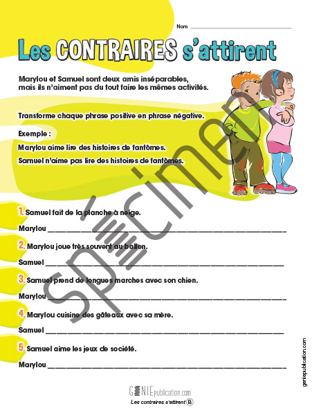 L'élève s'exerce à transformer des phrases positives en phrases négatives.