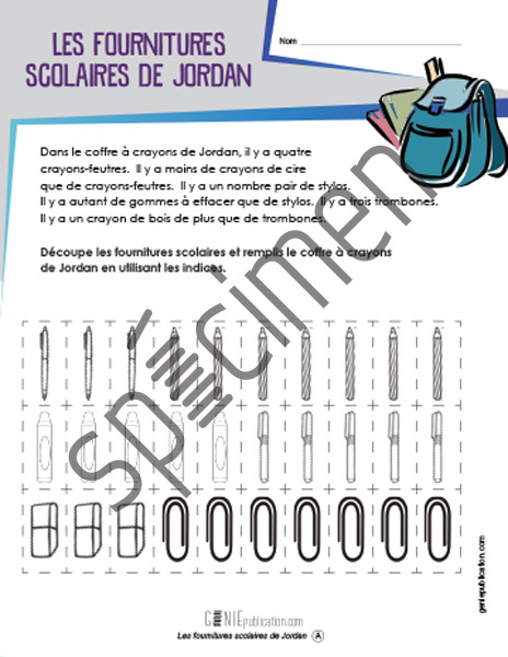 L'élève doit remplir un coffre à crayons en utilisant des indices mathématiques.
