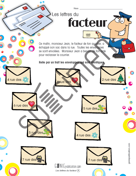 L'élève doit utiliser son sens de l'observation afin de reliser les éléments identiques.