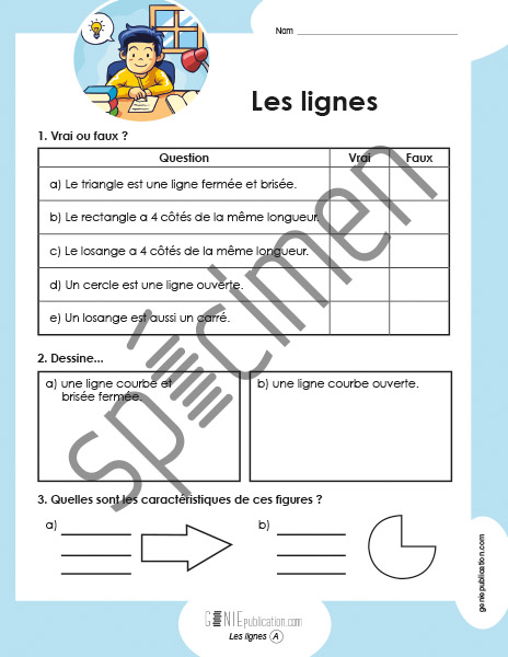 L'élève doit répondre à différentes questions au sujet des figures et des types de lignes.
