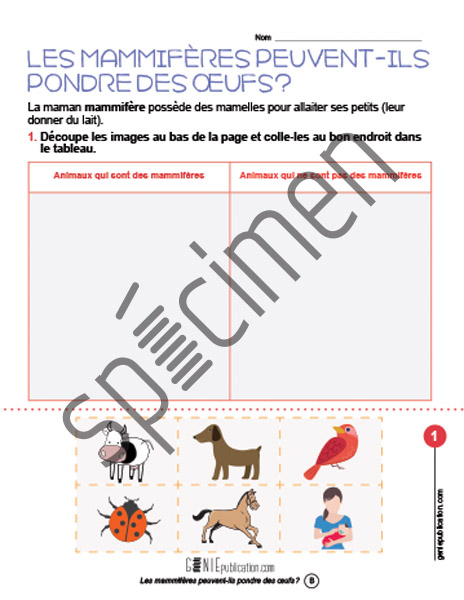 L'élève se familiarise avec les termes ovipare, vivipare, mammifère et marsupial.