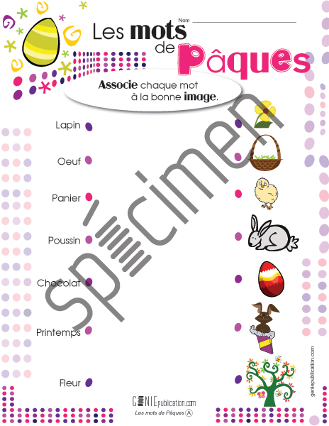 L'élève doit relier le mot à la bonne image.