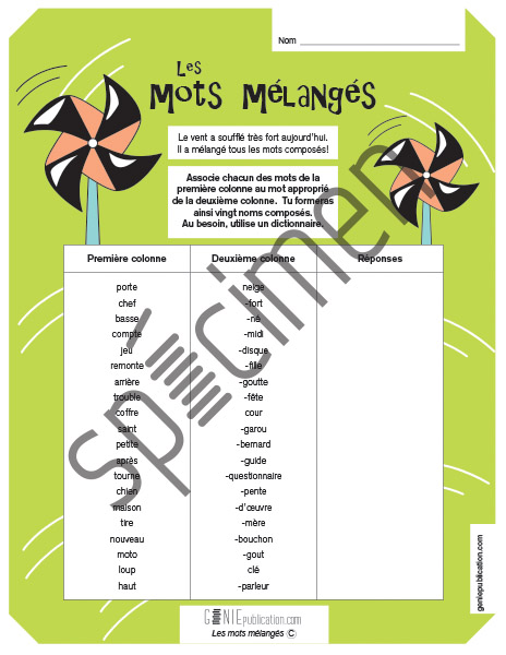 L'élève doit reconstituer des mots composés.
