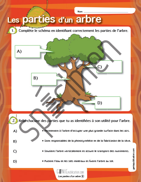 L'élève doit identifier les différentes parties d'un arbre et associer celles-ci à leur utilité pour l'arbre.