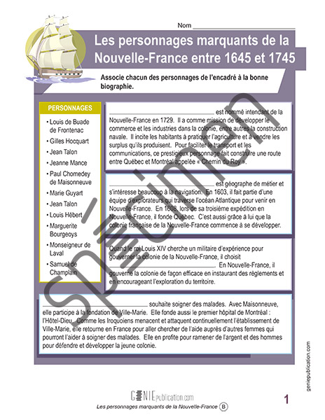 Dans cet exercice, les élèves doivent associer les personnages à leur biographie.
