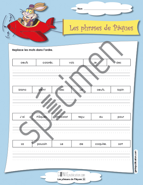L'élève doit remplacer les mots dans l'ordre agin que les phrases aient du sens.