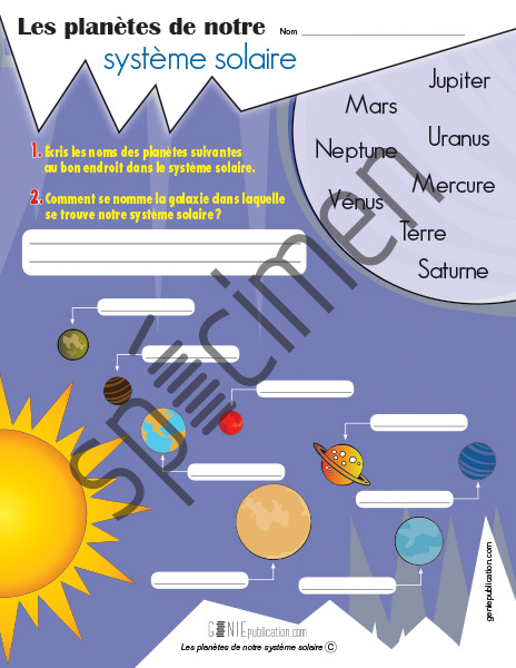 Sur un schéma, l'élève doit identifier les planètes de notre système solaire.