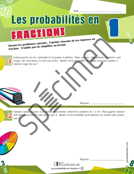 Les élèves doivent faire des résolutions de problèmes et répondre avec une fraction.