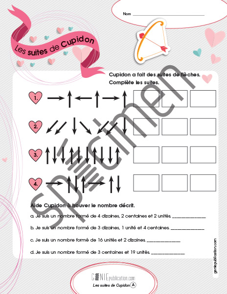 L'élève doit compléter des suites. Il doit ensuite trouver des nombres à partir de définitions mathématiques.