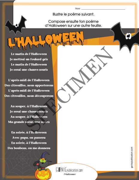 L’élève doit d’abord illustrer un poème. Il doit ensuite composer son propre poème sur le thème de l’Halloween.
