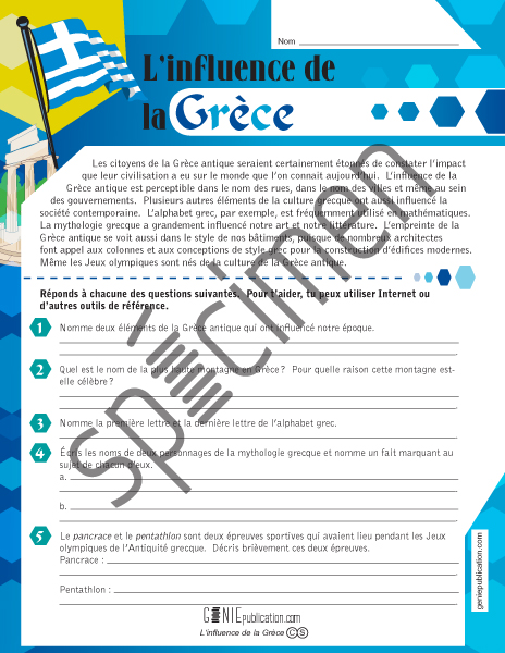 L'élève doit répondre à des questions au sujet de la Grèce antique en s'aidant du texte, d'Internet ou d'autres sources de son choix.