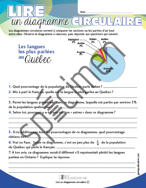 L'élève doit observer un diagramme circulaire et répondre à des questions.