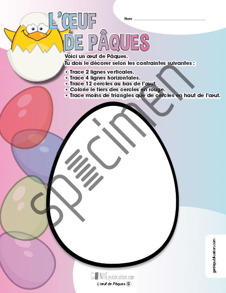 L'élève doit décorer l'œuf de Pâques selon des contraintes.
