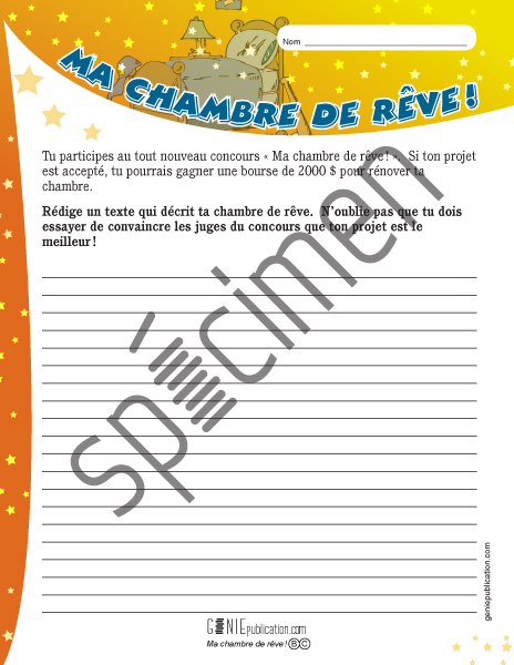 L'élève doit écrire un texte décrivant la chambre de ses rêves. Ce texte doit également viser à convaincre le jury d'un concours fictif.