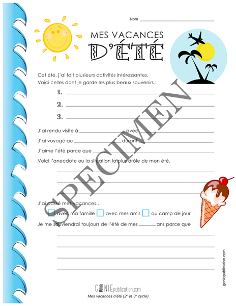 Mes vacances d'été 2e cycle