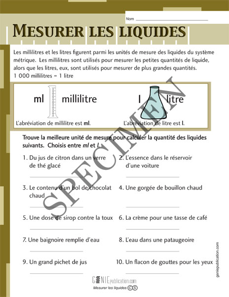 L'élève doit déterminer avec quelle unité de mesure entre le litre et le millilitre il serait préférable de calculer différentes quantités de liquides.