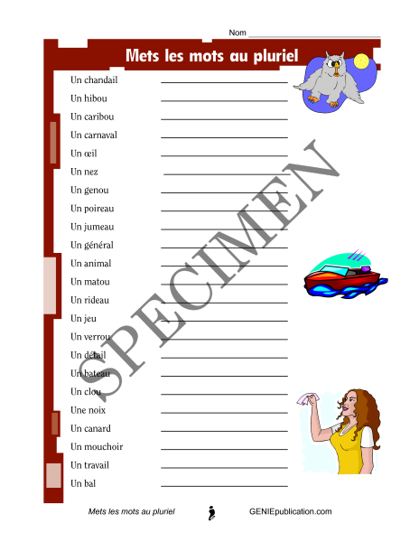 Dans cet exercice, les élèves doivent mettre au pluriel des mots dont le singulier se termine, par exemple, par «ou», «al» et «eu» Ils doivent ainsi appliquer certaines règles particulières du pluriel.