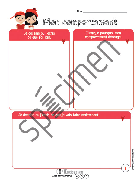 Cette fiche permet à l'élève de réfléchir sur un comportement inadéquat qu'il a eu et sur la manière par laquelle il peut s'améliorer.