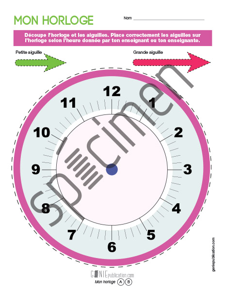 L'élève doit placer correctement les aiguilles de l'horloge selon les heures qui lui sont dictées.