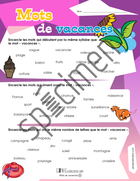 Mots de vacances