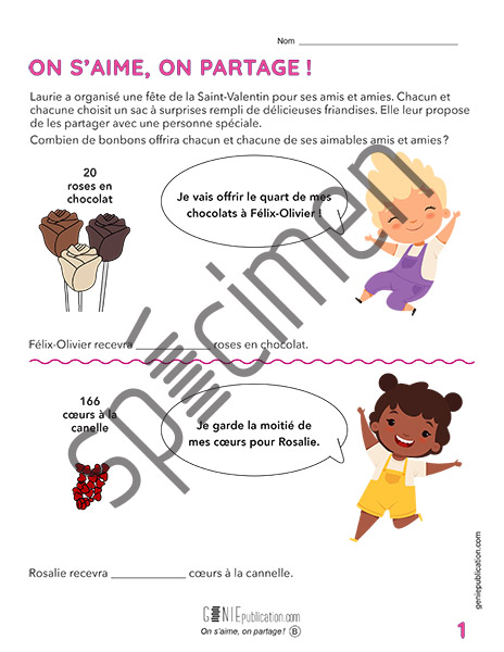 Laurie propose à ses amis de partager une partie de leurs bonbons avec une personne spéciale. Dans cette activité, l’élève doit dire combien de bonbons chaque enfant souhaite donner.