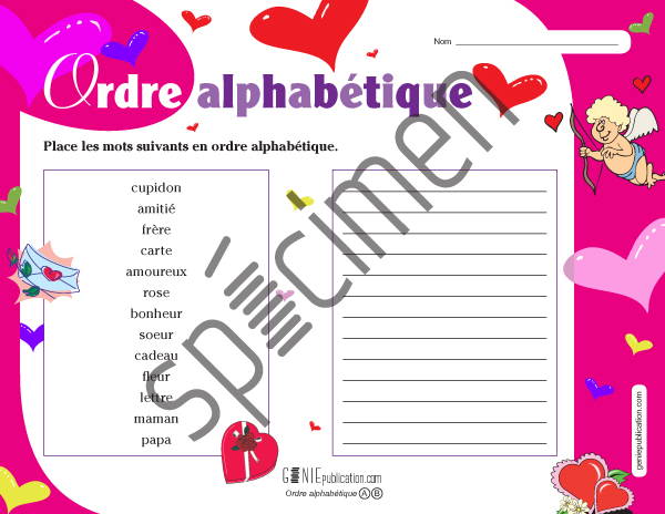 L'élève doit classer les mots en ordre alphabétique.