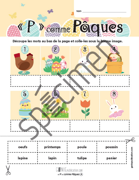 L'élève doit découper les mots et les coller sous la bonne illustration.
