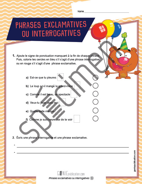 L'élève doit différencier les phrases exclamatives des phrases interrogatives.