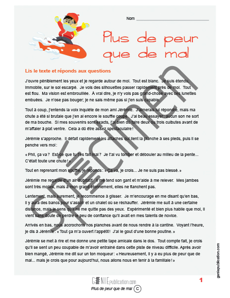 L'élève doit lire un texte et répondre aux questions de compréhension qui s'y rapportent.