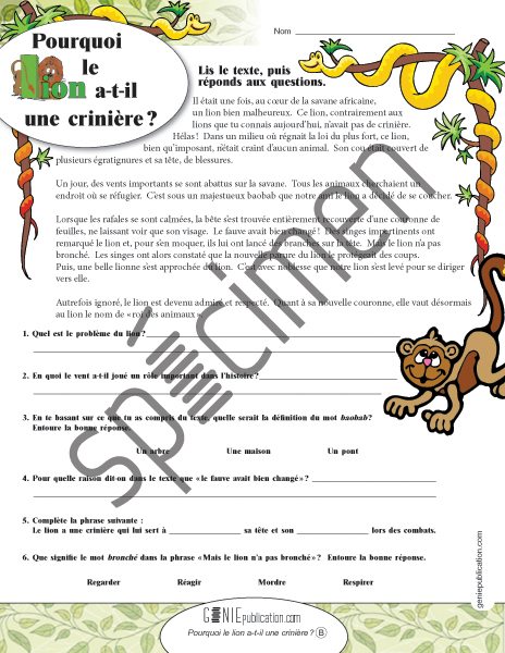 L'élève doit répondre aux questions en fonction du texte qu'il a lu.