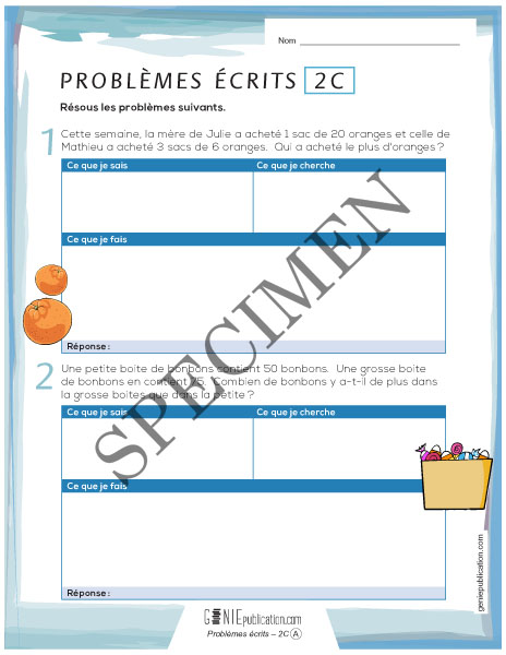 L'élève doit résoudre deux courts problèmes écrits.