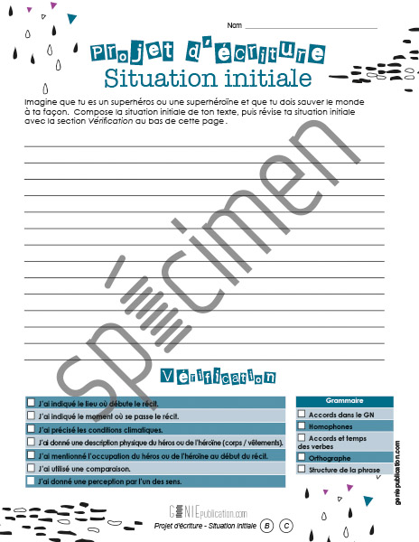 L'élève doit écrire une situation initiale pour un projet d'écriture.
