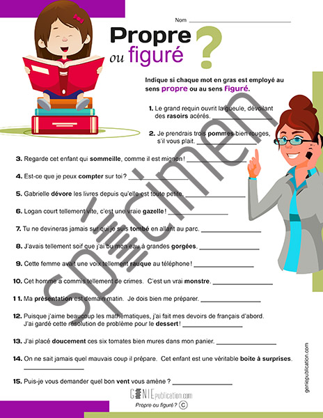 L'élève doit indiquer si les mots sont utilisés au sens propre ou au sens figuré.