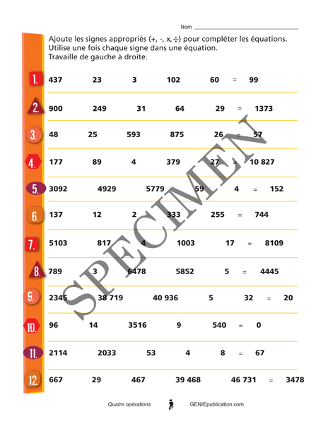 Dans cette activité, l’élève trouve le signe approprié pour compléter