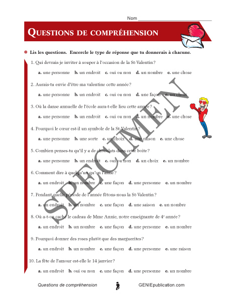 L'élève doit encercler le type de réponse qu'il donnerait à chacune des questions.