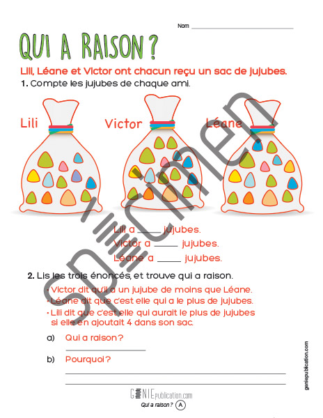 L'élève s'exerce à compter, puis il doit répondre à une question mathématique.
