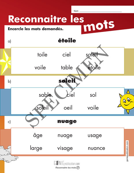 L'élève doit repérer les mots demandés à l'intérieur d'une liste et les encercler.