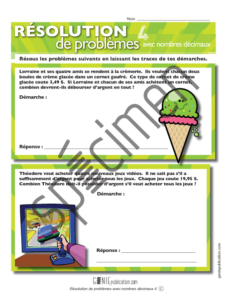 L'élève doit multiplier des nombres entiers par des nombres décimaux afin de résoudre deux courts problèmes écrits.