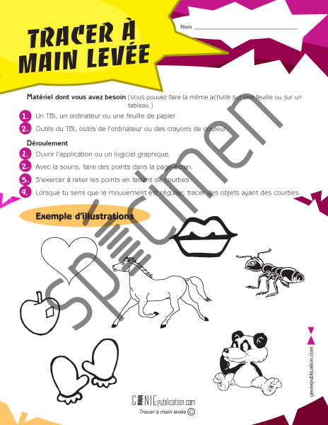 L'élève s'exerce à tracer des courbes et images à main levée.