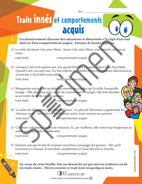L'élève doit déterminer si différentes situations représente des traits innés ou des comportements acquis.