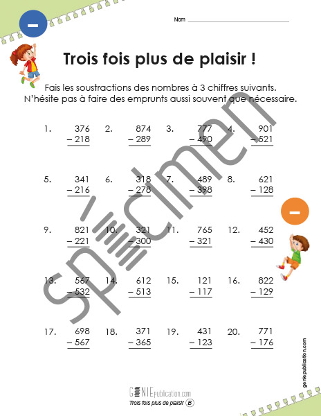 L'élève doit faire des soustractions de nombres à 3 chiffres.