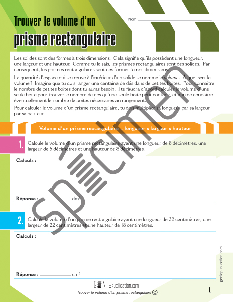 L'élève doit calculer le volume de différents prismes rectangulaires.